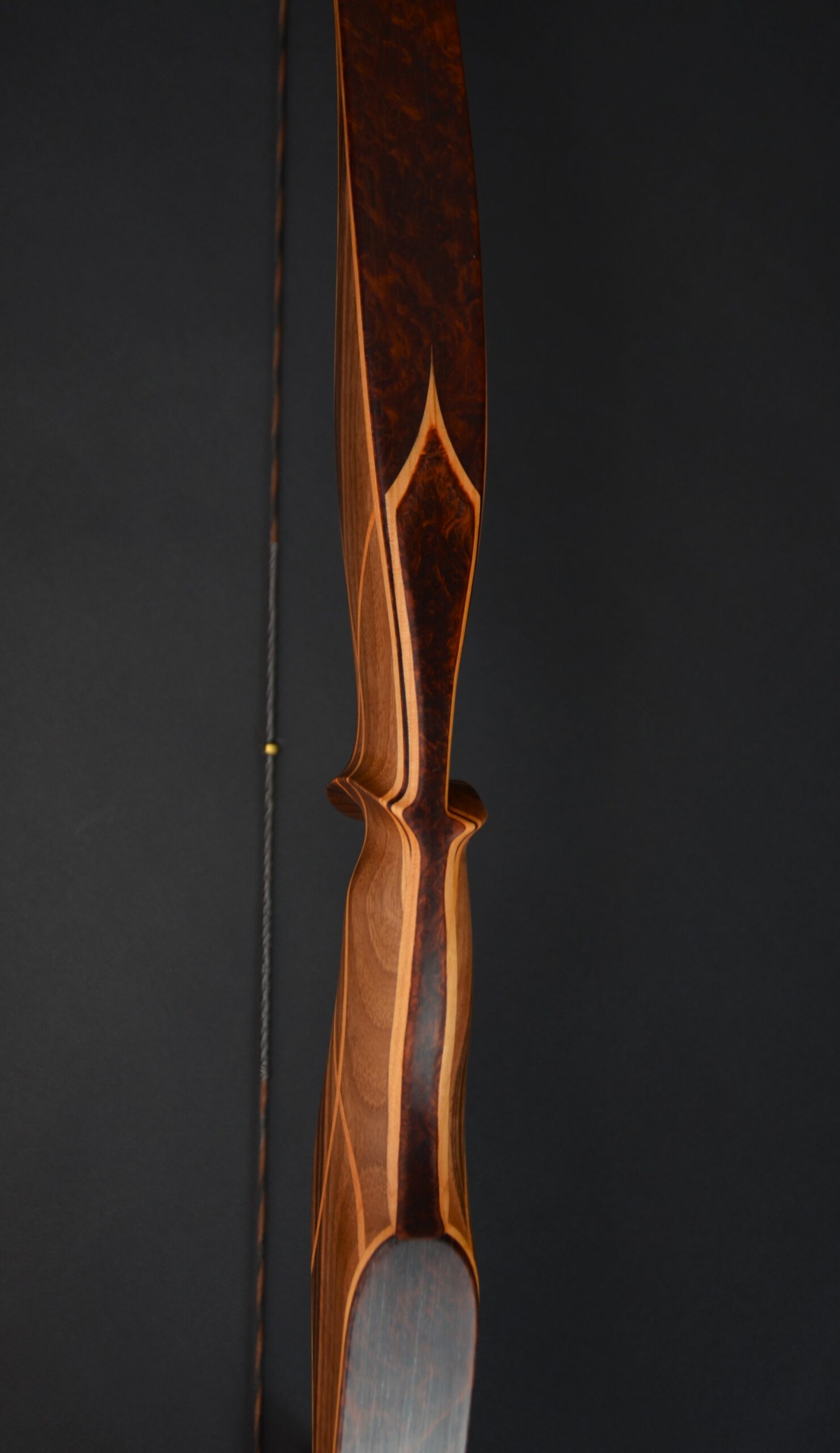 Dieser Bogen ist grundsätzlich für mediterranen Ablass und Druckpunkt in der Daumenkule konstruiert. Ungtergriff kann bei der Fertigung berücksichtigt werden. Durch seine Konstruktion kann er problemlos, homogen und geschmeidig bis 32″ ( Spitze auf shelf) Auszug gezogen werden.